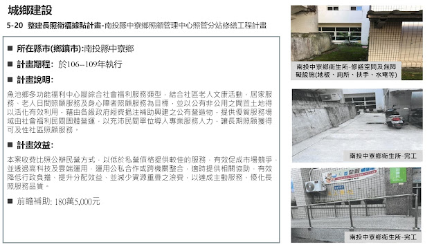 FORMOSARACE:【南投縣】城鄉建設〔公共服務據點整備〕整建長照衛福據點計畫。相關訊息