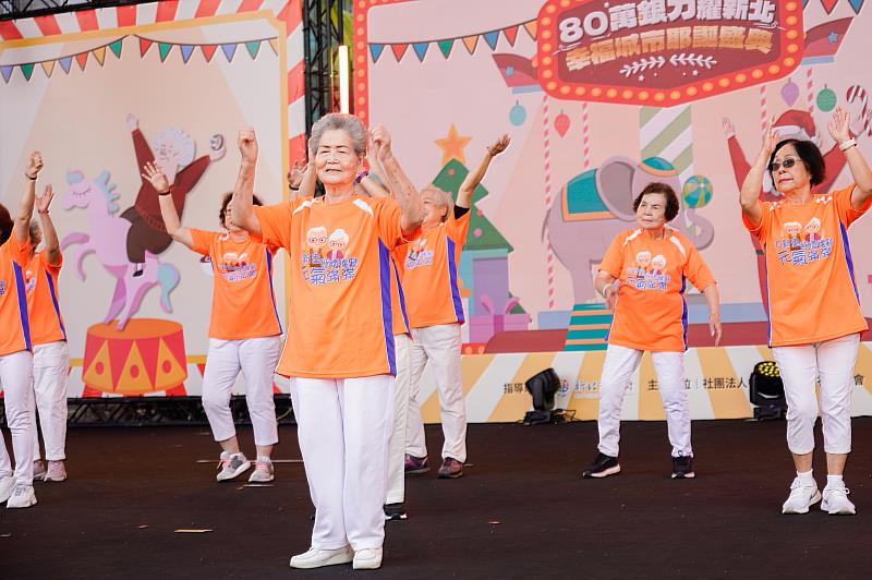 新北據點長輩參與「80萬銀力耀新北、幸福城市耶誕盛典」活動演出。